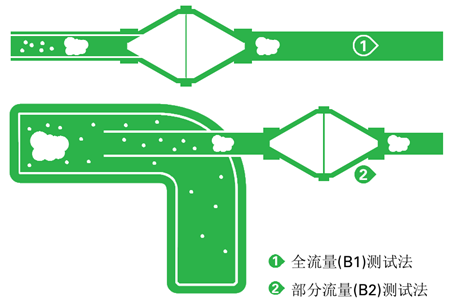 部分流量(B2)測試法:只測定中心氣流。也就是說,只有霧態(tài)油能夠被檢測到,而沿著管壁的液態(tài)油無法被檢測到。